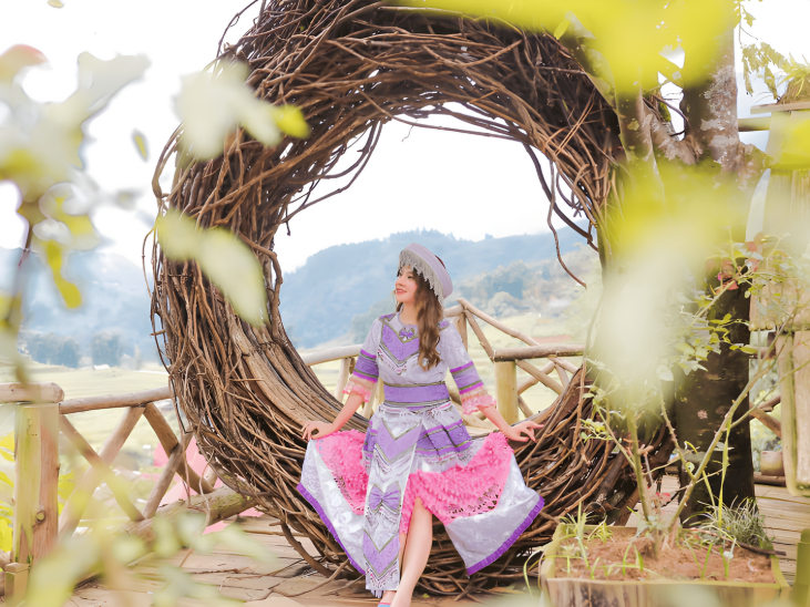 Thuê trang phục dân tộc H'Mông sẽ giúp bức ảnh thêm sinh động và đậm phong cách Tây Bắc. Nên chụp ảnh tại các điểm đặc trưng như thác nước, cầu gỗ, nhà sàn truyền thống để có những bức ảnh ý nghĩa. Sử dụng chế độ chụp chân dung để làm nổi bật khuôn mặt và trang phục trước khung cảnh thiên nhiên mờ ảo phía sau.