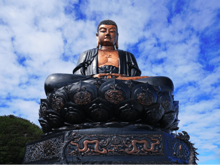 Du khách có thể trải nghiệm chiêm bái tại Đại tượng Phật A Di Đà bằng đồng. (Nguồn: Sưu tầm)