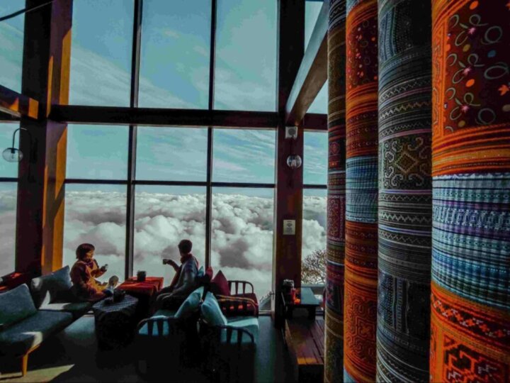 Nội thất sang trọng theo phong cách Pháp với các ô cửa kính lớn giúp du khách ngắm trọn mây trời và núi rừng Tây Bắc bao la. Cảm giác ngồi nhâm nhi ly cà phê Ý nóng hổi trong khi nhìn xuống những đỉnh núi khác từ vị trí cao nhất Việt Nam thực sự là trải nghiệm không thể nào quên. Thực đơn đa dạng từ trà cao cấp, cafe Ý đến bánh ngọt và các món ăn nhẹ tinh tế.